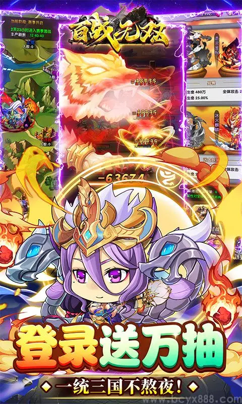 执掌天命者,当立不世之功!《百战无双》是一款以三国为题材的放置卡牌策略游戏。玩家将化身三国主公,招募历史名将,通过策略布阵、武将养成和阵营搭配,体验热血征伐与智谋博弈。游戏融合了放置挂机、跨服竞技等多元玩法,搭配精致卡通画风与沉浸式战斗效果,重现三国巅峰时代的史诗对决。