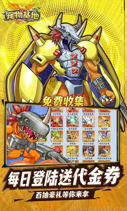 《宠物基地》震撼来袭!这款放置卡牌回合制游戏,完美复刻经典动漫世界。亚古兽、加布兽等众多熟悉的数码宝贝化身为卡牌,等待玩家收集与养成。在回合制战斗中,玩家需要巧妙搭配卡牌阵容,利用数码宝贝的独特技能和属性相克原理,与对手展开策略博弈。此外,游戏还精心设计了丰富的剧情关卡,让你重温动漫中的热血冒险情节,与数码宝贝伙伴们一起并肩作战,拯救数码世界!