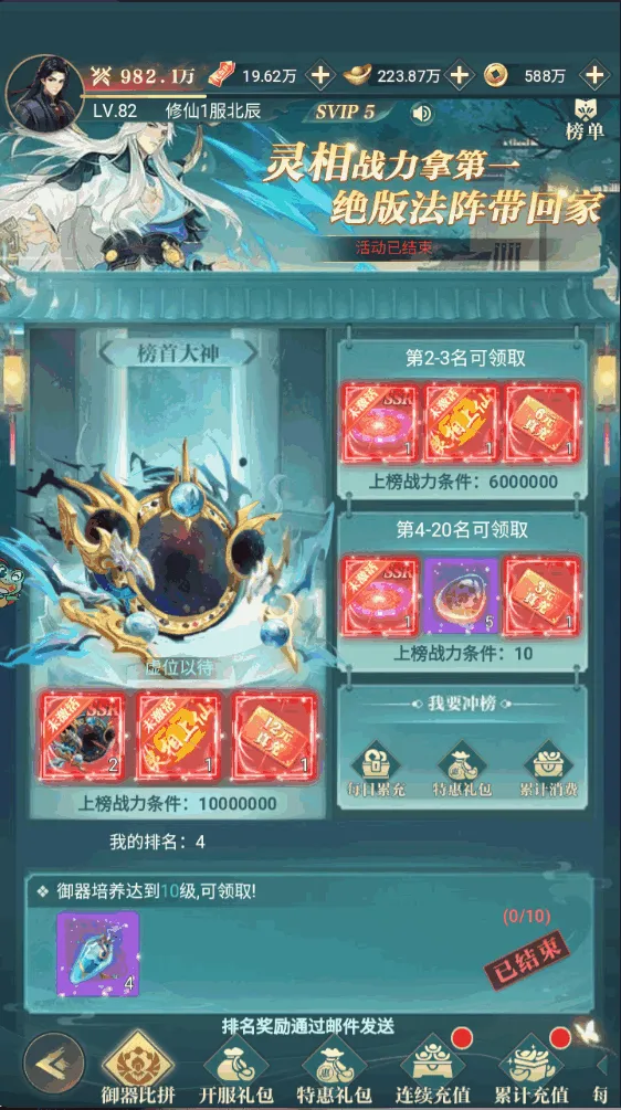 代金券X88888,元宝X100万,金币X200万,时装-司徒X1,飞剑-龙炎X1,强化石X99,洗炼石X99 仙器宝图X10