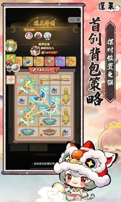 《蓬莱》是一款以西游神话为背景的休闲策略塔防手游。游戏创新性地将背包整理玩法与塔防战斗相结合,玩家将扮演拥有乾坤袋神通的修行者,通过巧妙摆放各类法宝来抵御妖怪入侵。