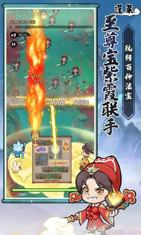 在游戏中,每件法宝都拥有独特的形状和属性词条。玩家需要像玩俄罗斯方块一样,在有限的乾坤袋空间内合理布局法宝。游戏提供丰富的法宝收集系统,从常见的捆仙绳、紫金葫芦,到稀有的九齿钉耙、芭蕉扇等应有尽有。随着关卡推进,还能解锁法宝合成功能,将低级法宝合成为更强大的神器。
